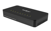 PO Switch SF 800 Q+ possui 8 portas Fast Ethernet 10/100 Mbps para compartilhamento de internet com os dispositivos conectados, enquanto sua porta LAN 1 possui suporte a PoE Passivo, que permite a alimentação do switch através do cabo de rede.